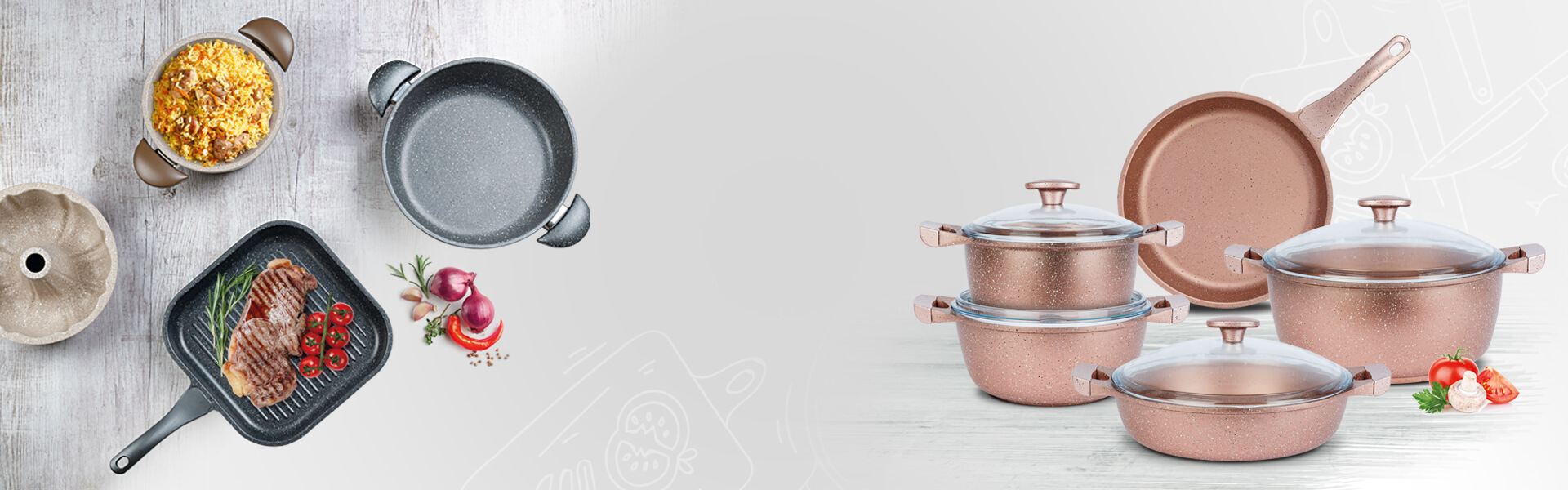ThermoAD | 16 Parça Tencere-Sahan-Tava Seti | Graneu Serisi | Gri